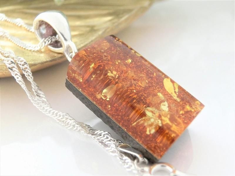 琥珀は、シルバーフレームに接着剤で固定してあるため、水気にお気をつけくださいませ。