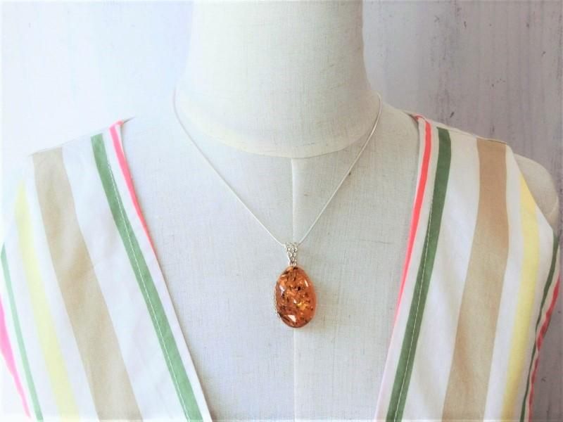 琥珀は、シルバーフレームに接着剤で固定してあるため、水気にお気をつけくださいませ。