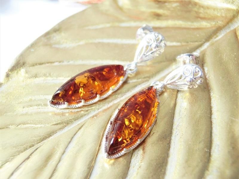 琥珀は、シルバーフレームに接着剤で固定してあるため、水気にお気をつけくださいませ。