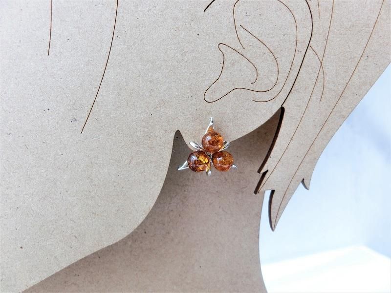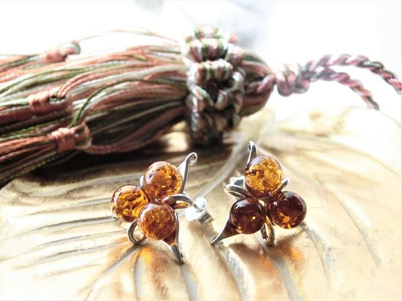 花のがくを模した台座に小さな丸いアンバーの実が三つ寄り添い、