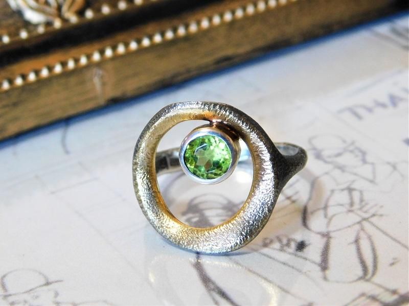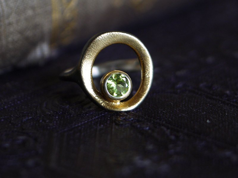 その名の通り、小さな金色の環の中にペリドットの可憐な一粒を設えた