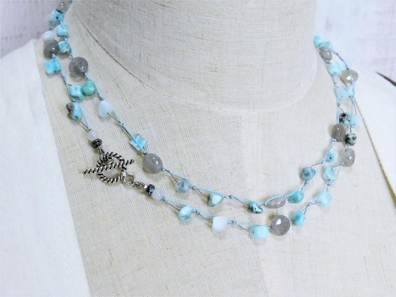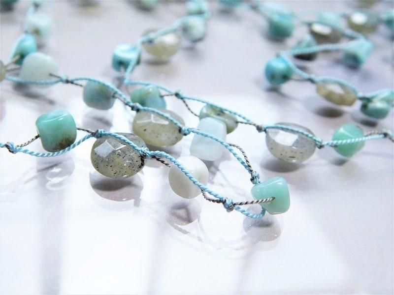 優しい色味の石たちを集めて柔らかなシルクコードで繋いでいき