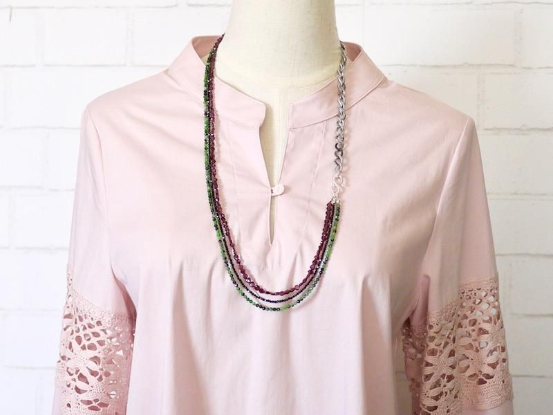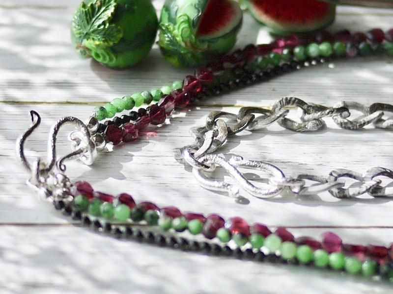 スイカネックレスに繋ぐと、キラキラ素敵なロング丈ネックレスに変身!