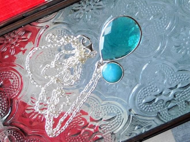ノスタルジーをかきたてるボトル色のペンダントには、