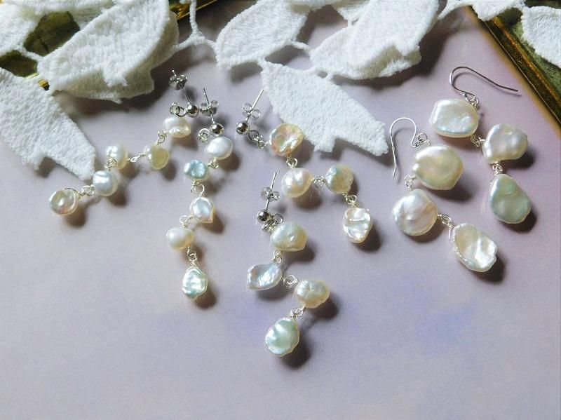 3種類のパールで作ったイヤアクセは、みなさまから頂いた嬉しいレスポンス。