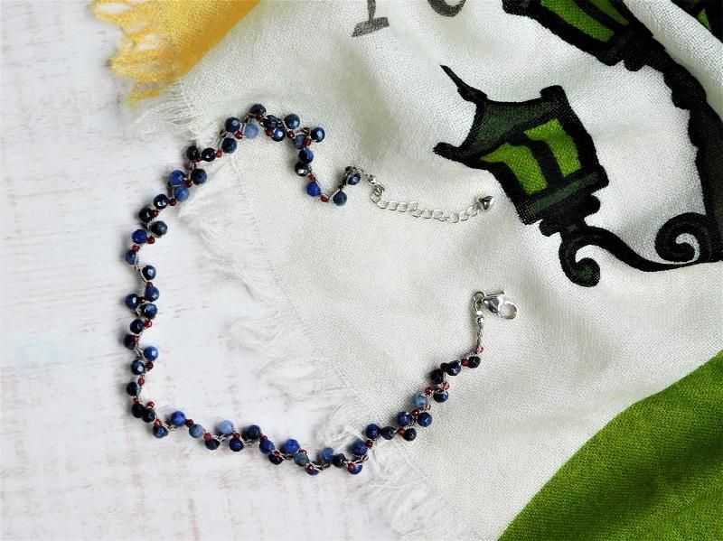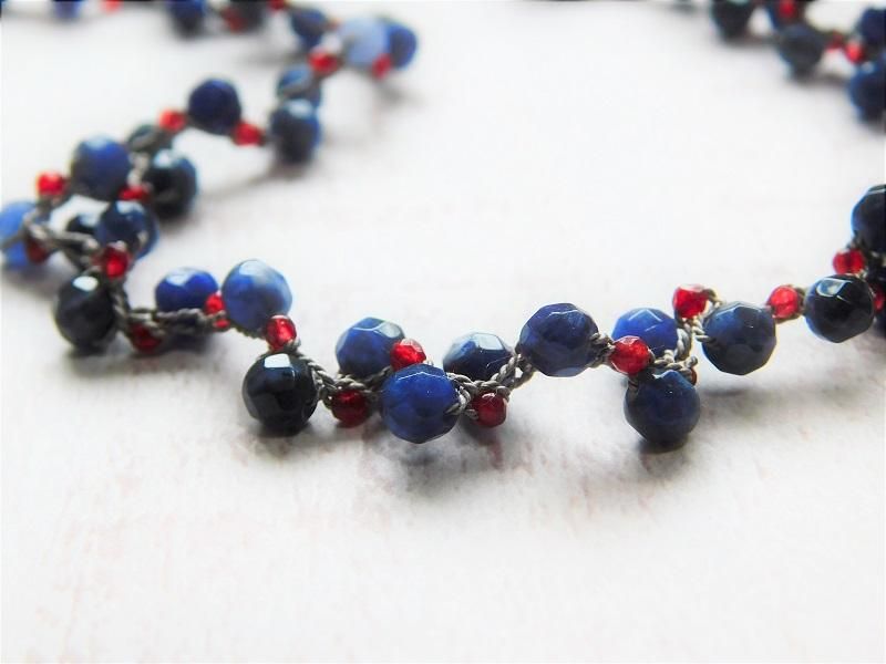 素材:ソーダライト(4mm)/ レッドジェイド(2mm)/ カレンシルバービーズ(3mm,シルバー)