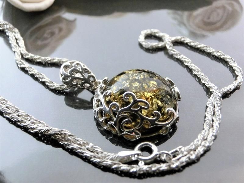 琥珀は、シルバーフレームに接着剤で固定してあるため、水気にお気をつけくださいませ。