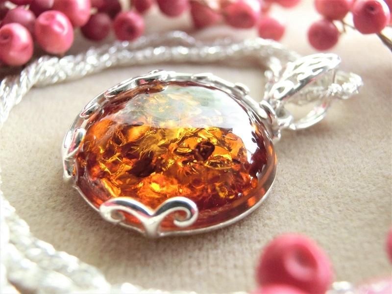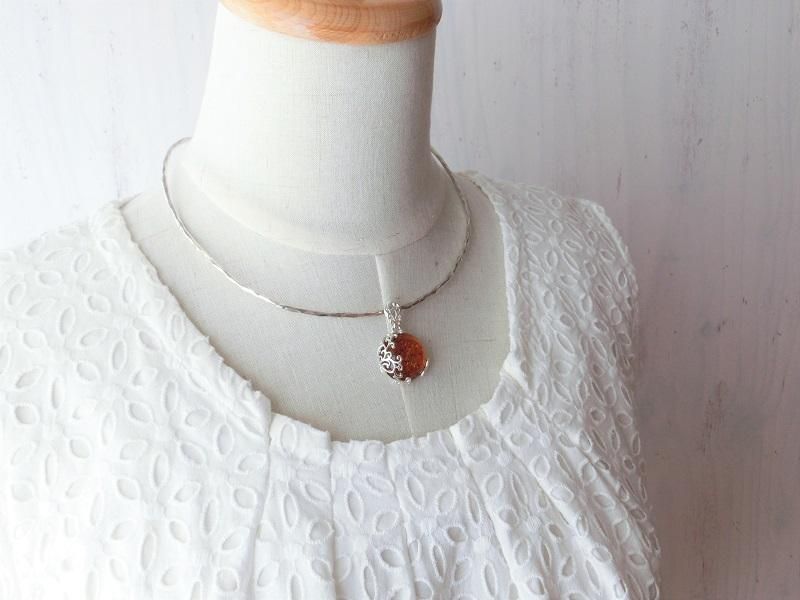 琥珀は、シルバーフレームに接着剤で固定してあるため、水気にお気をつけくださいませ。