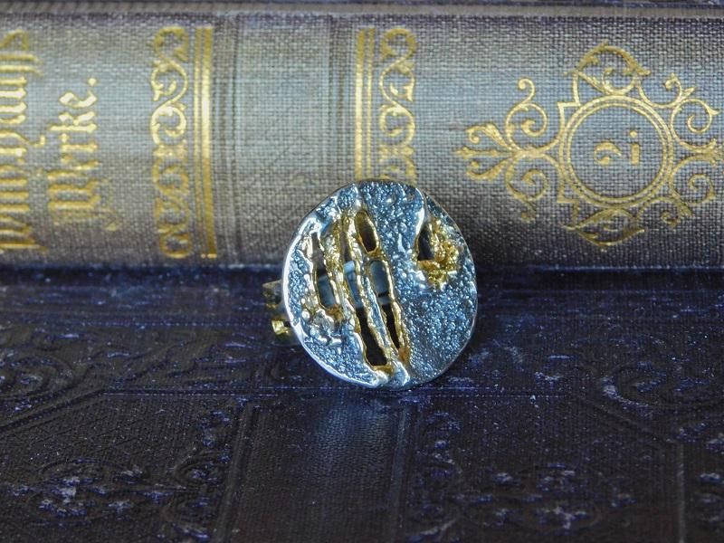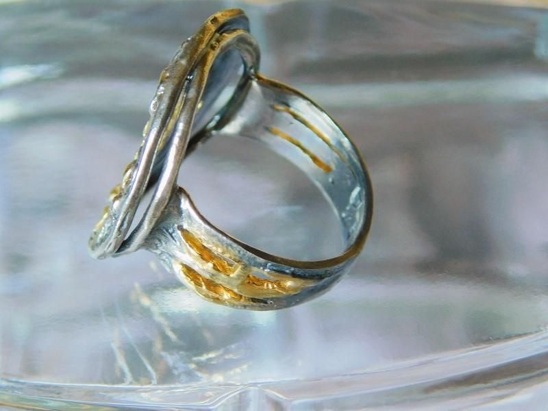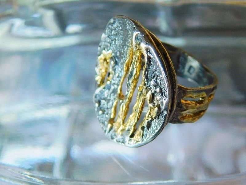 爆発的なパワーを秘めた地球のエネルギーを、EvaStoneは金と銀を使って表現しました。