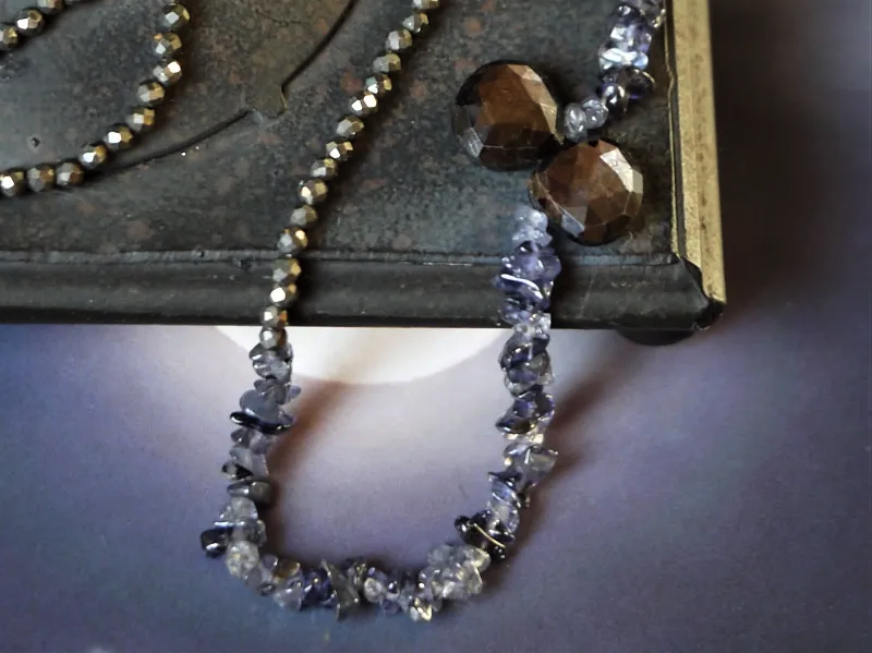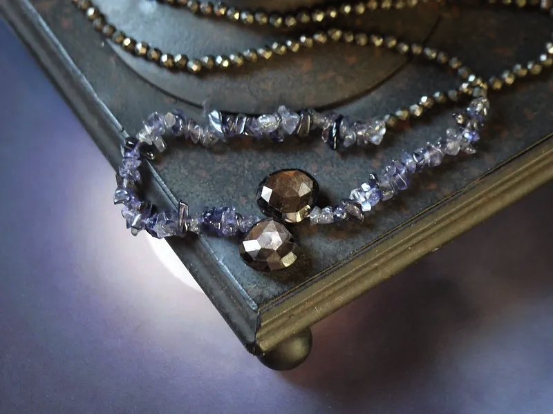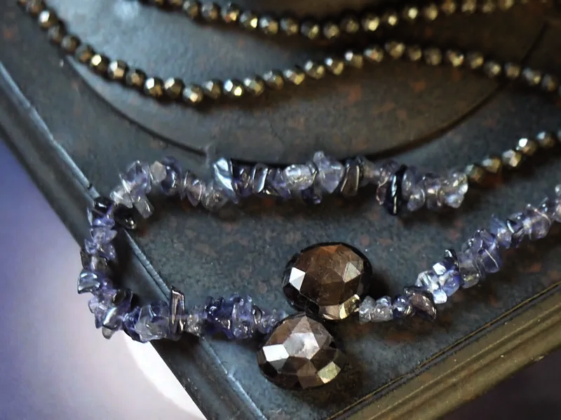 【素材】ゴールドシーンサファイア(13mm×12mm)、アイオライト(5〜7mm)、パイライト(3mm)