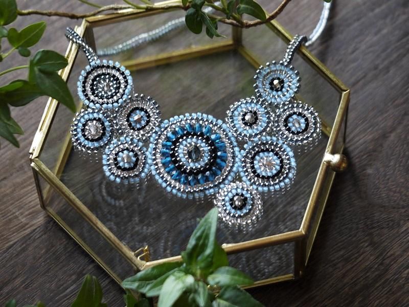 日本の唐草模様のルーツとも言われるこの模様を、ビーズ編みで再現し、ネックレスに仕立てました。