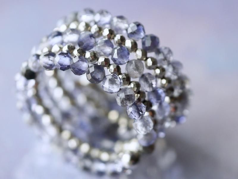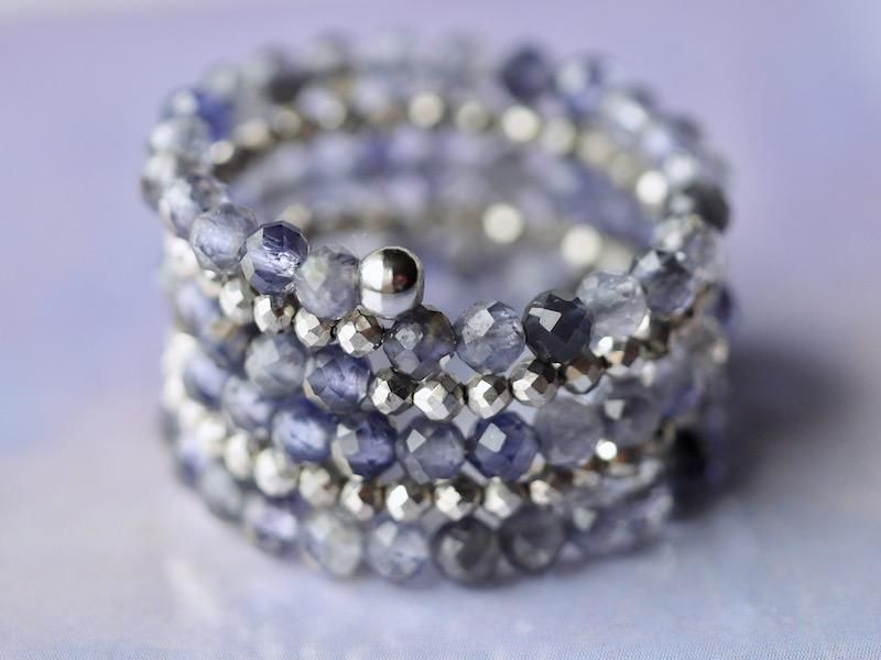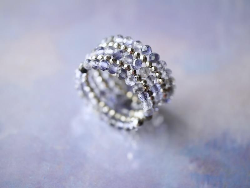 そんな星たちの楽しい声が聞こえてくるようなコイルリングを、9月の誕生石アイオライトで作りました。