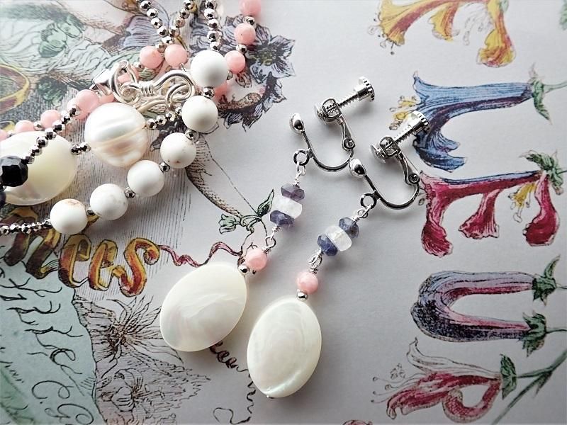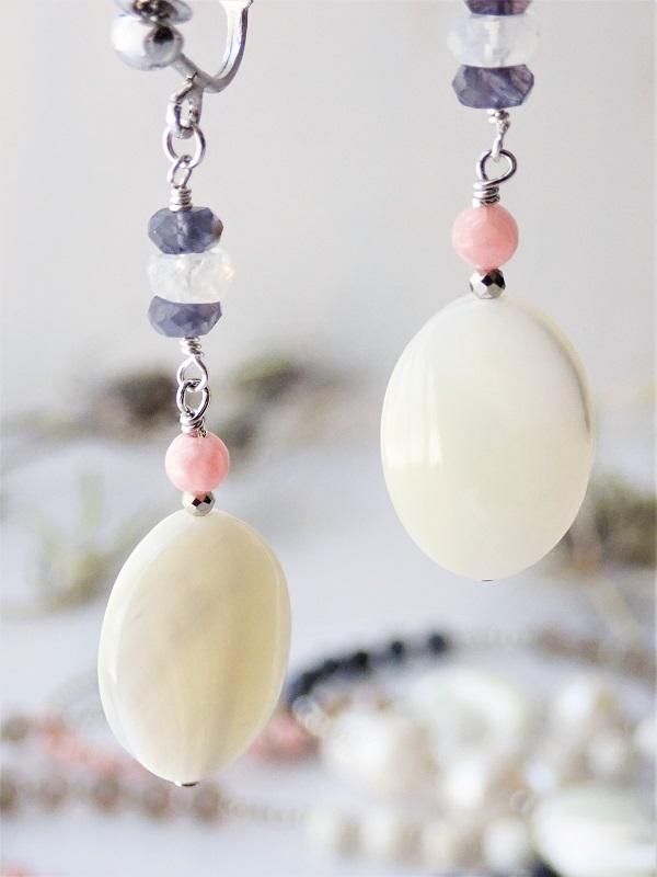 アイオライトとムーンストーンを重ねて透き通るベールを纏ったかのようです。