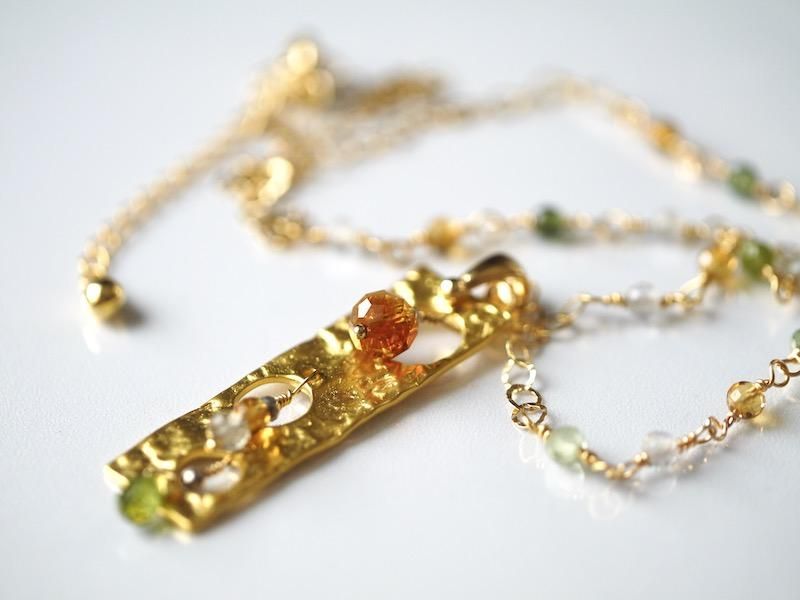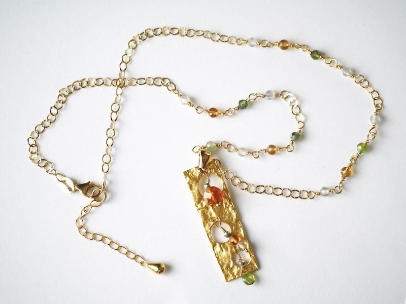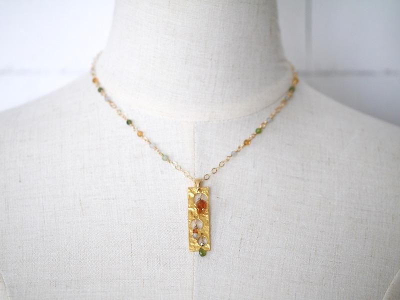 金色のプレートに天然石を組み合わせたペンダントトップ。