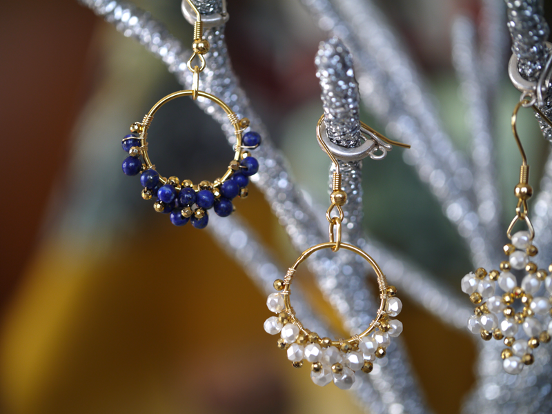 揺れを楽しみたい方には、イヤリングもしくはフック式ピアスがお勧めです。