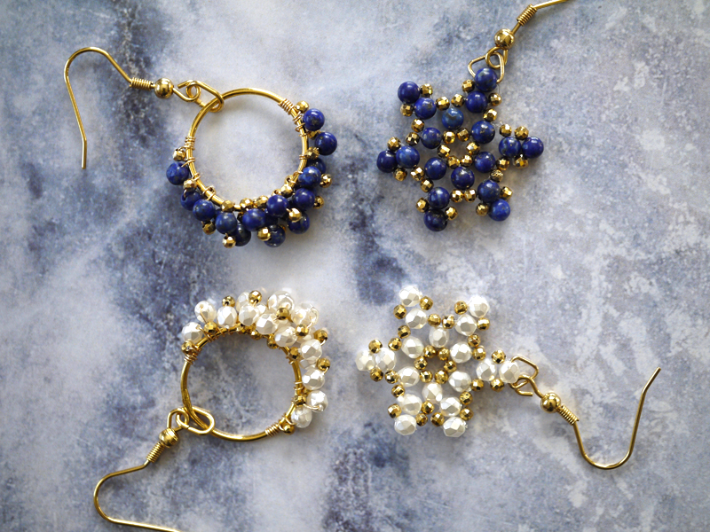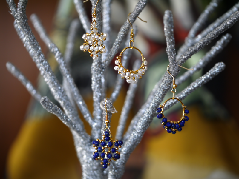 * 月や雪の結晶モチーフ部分は繊細ですので、つけ外しはイヤリング/ピアス金具部分を持って行って下さいますようお願いします。