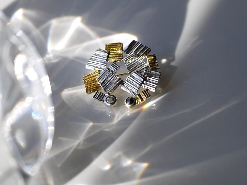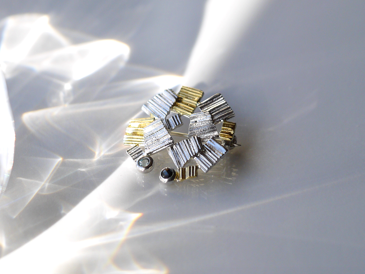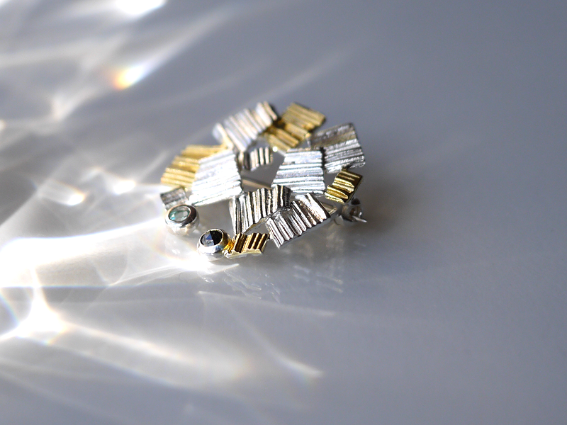 光の瞬く瞬間を銀細工でみごとに捉えて再現した作品。