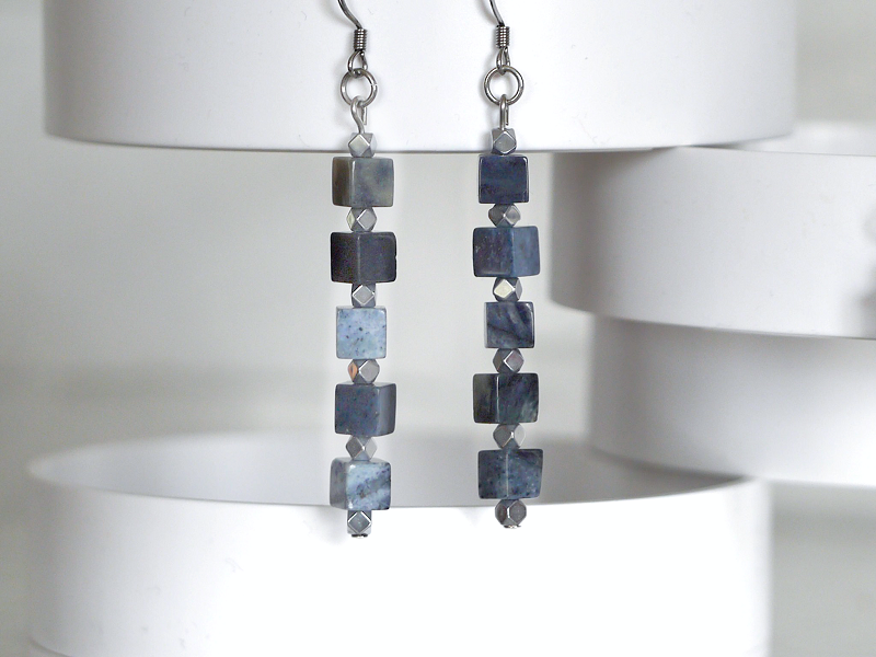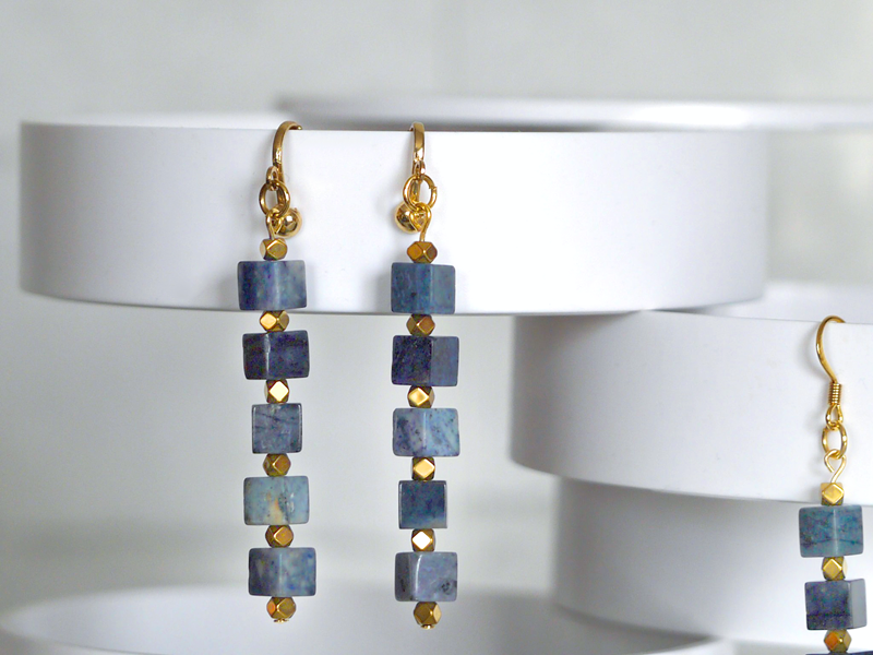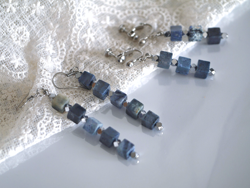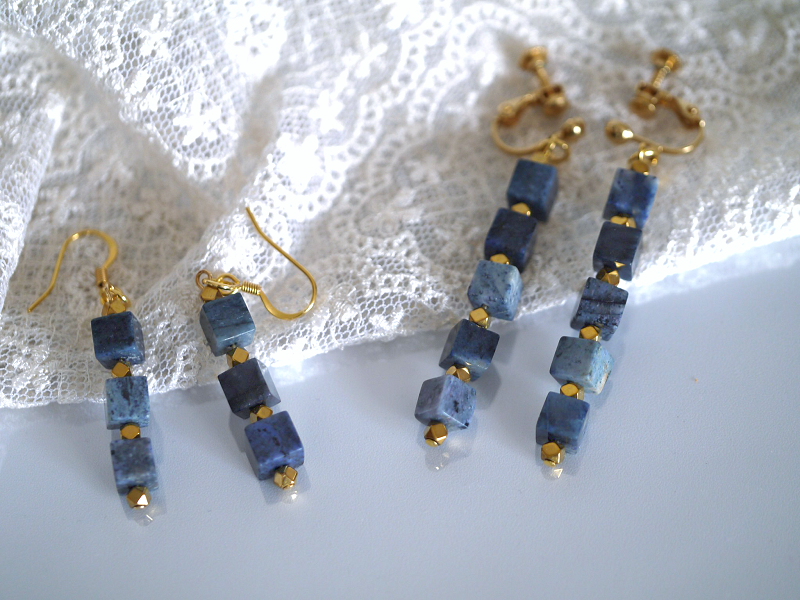 デュモルチェライトの藍色キューブイヤリング/ピアス