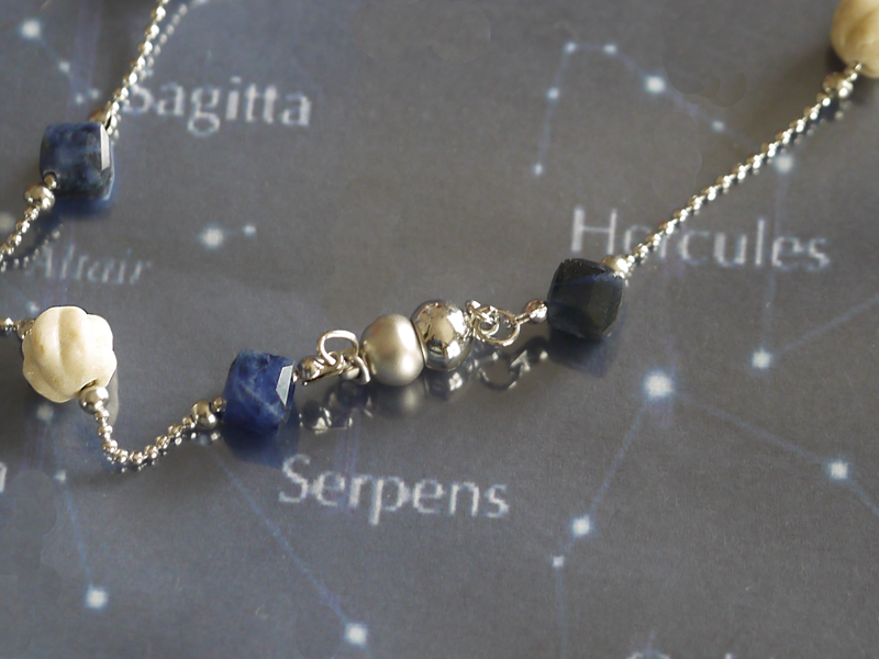 キラキラ光るチェーンにお行儀よく並ぶ様子は夜空に浮かぶ星座のよう。