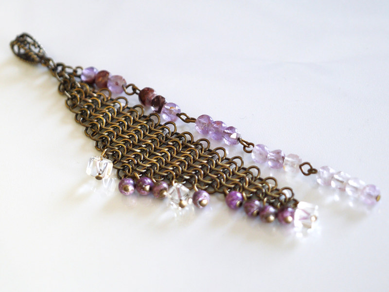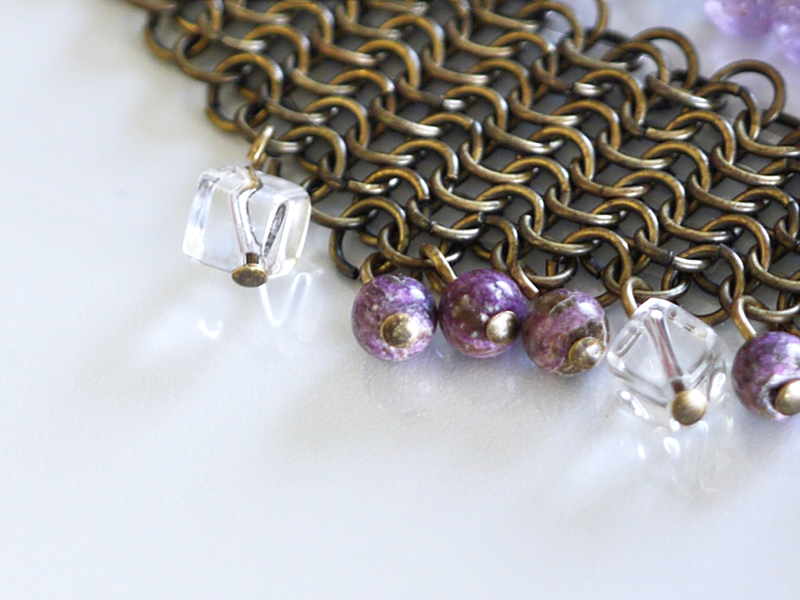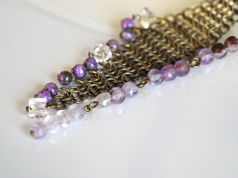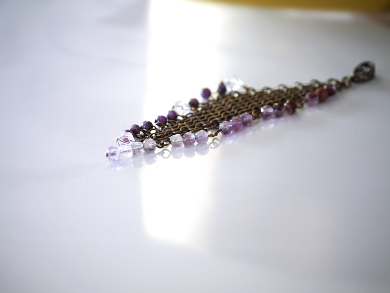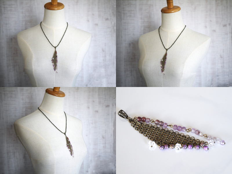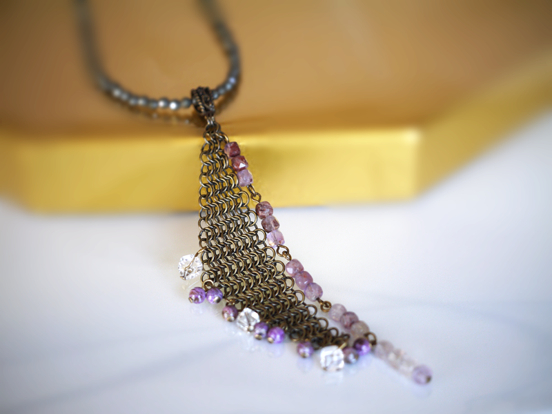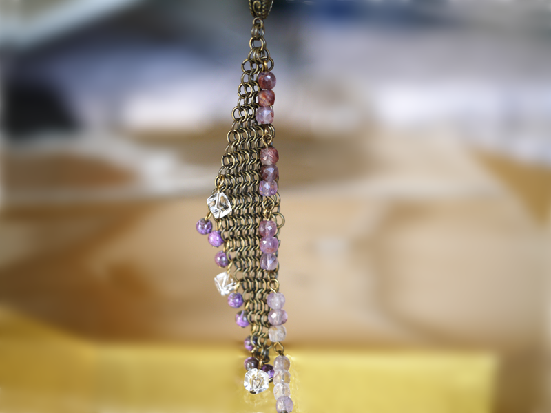 古美色に輝くガーデンアメシストのチェーンメイル ペンダント