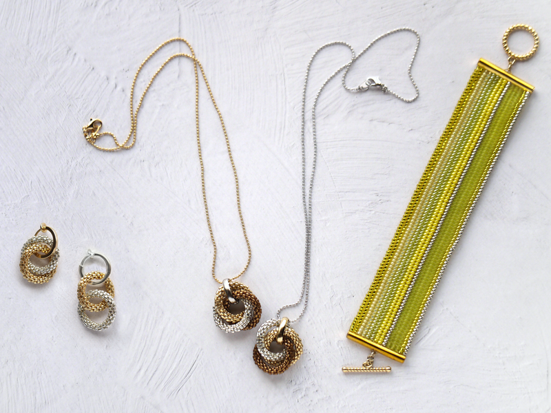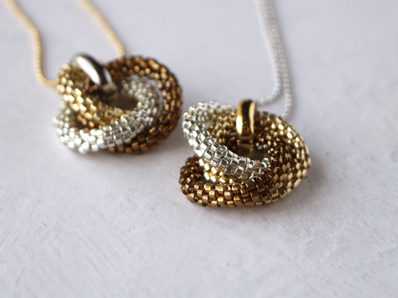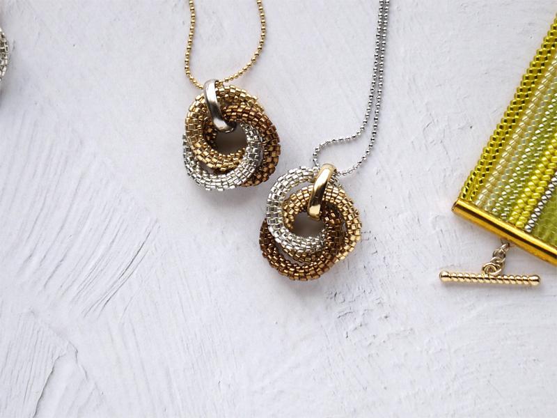 金・銀・カッパーの三連リングがモチーフの軽やかキラキラペンダント