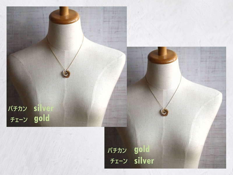 ※ペンダントのバチカン(チェーンを通す部分)とイヤリング金具の色をお選びいただけます。