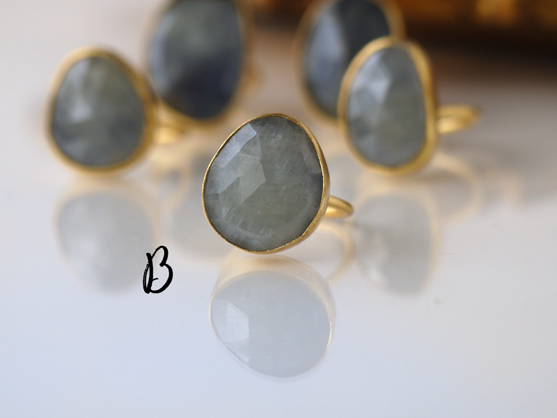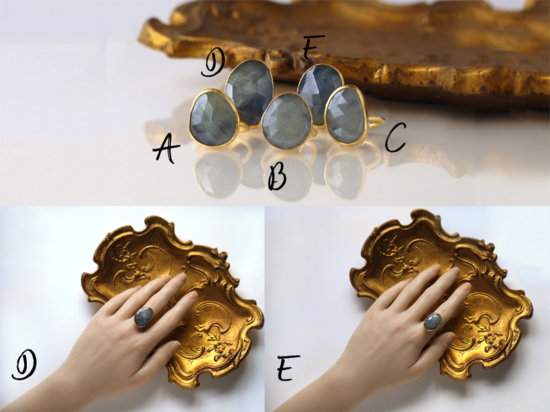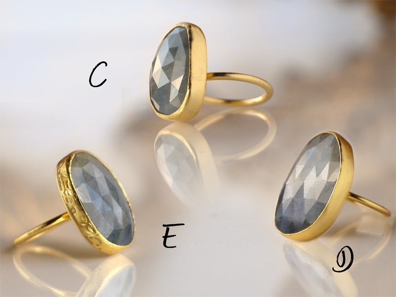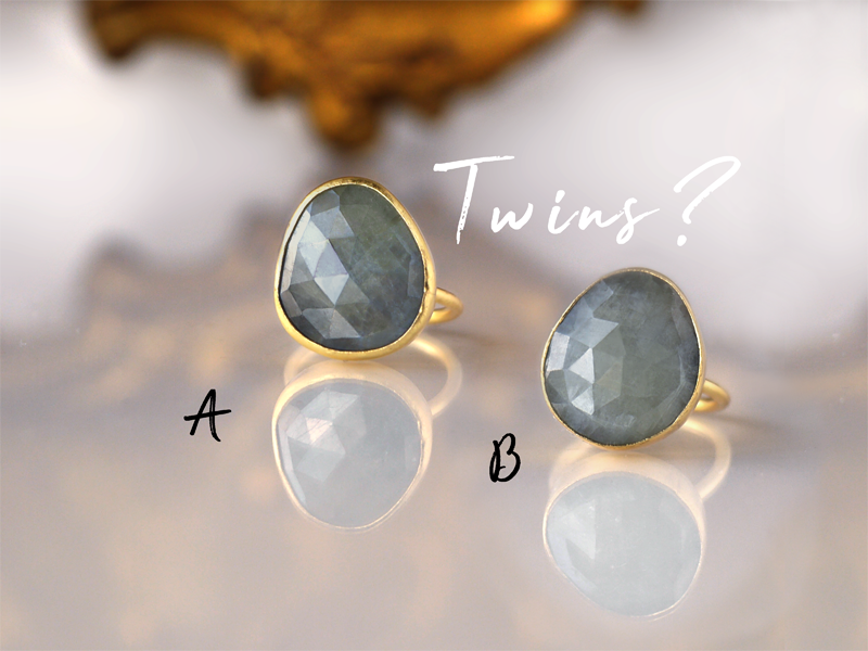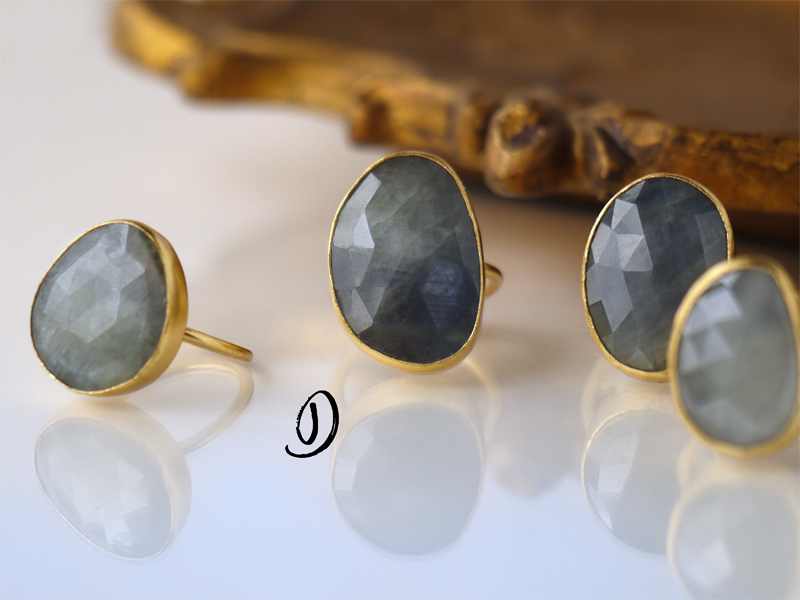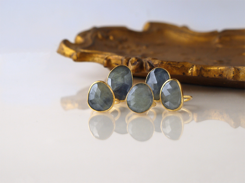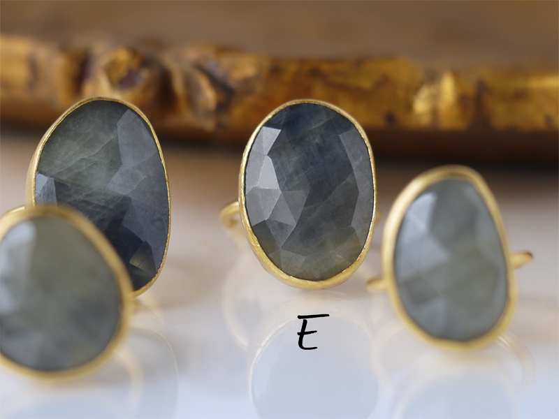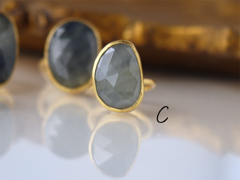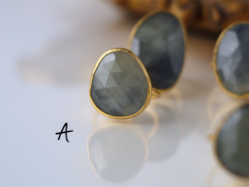 こちらのリングのサファイアは、煙ったようなモスグリーンが特徴。