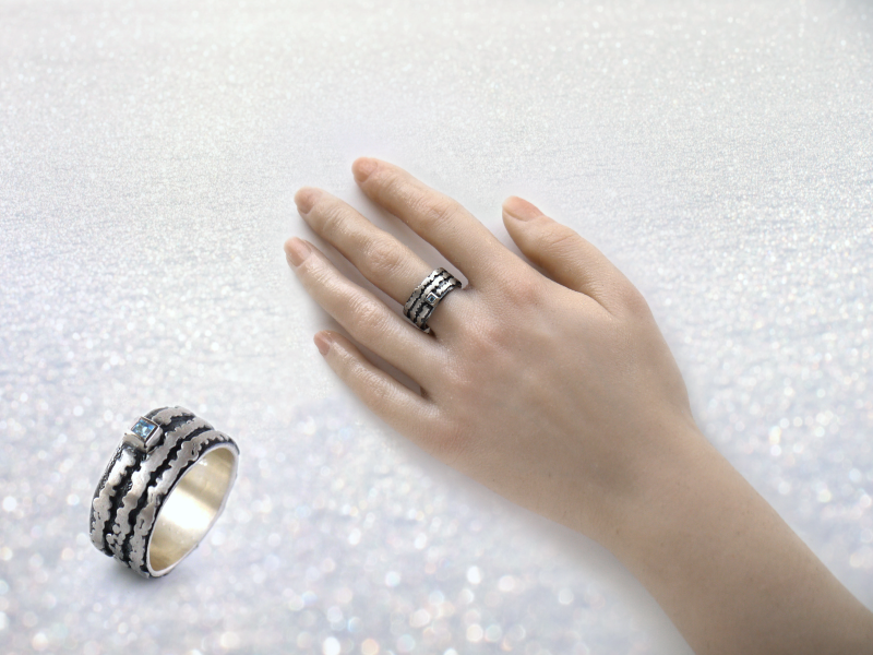 ブルートパーズの発色があまりにも素晴らしく、冬の空に輝く青い星の名をいただきました。